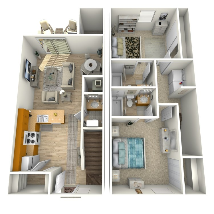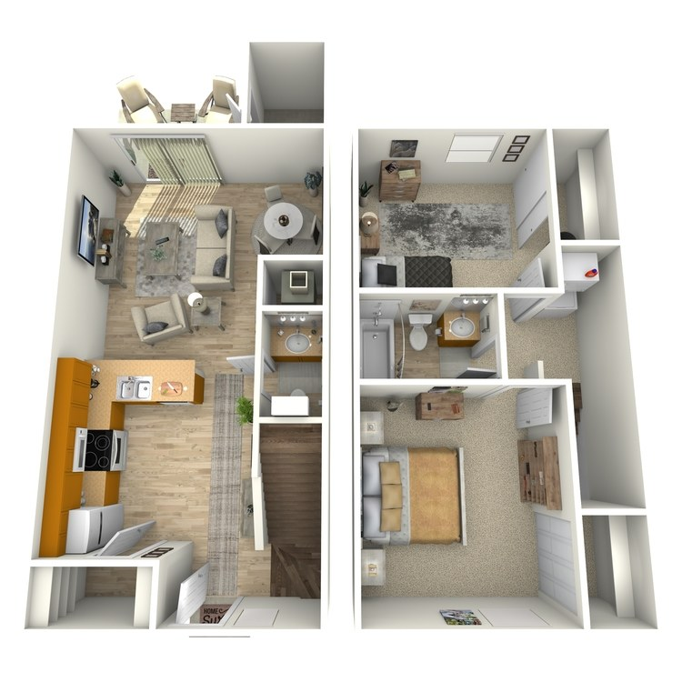 Our floor plans are expertly tailored to maximize the use of floor space and counter space, streamlining the function, flow, and overall feel of each home. Modern colors and sleek design offer a stylish aesthetic that can be personalized to suit your decorative tastes.
